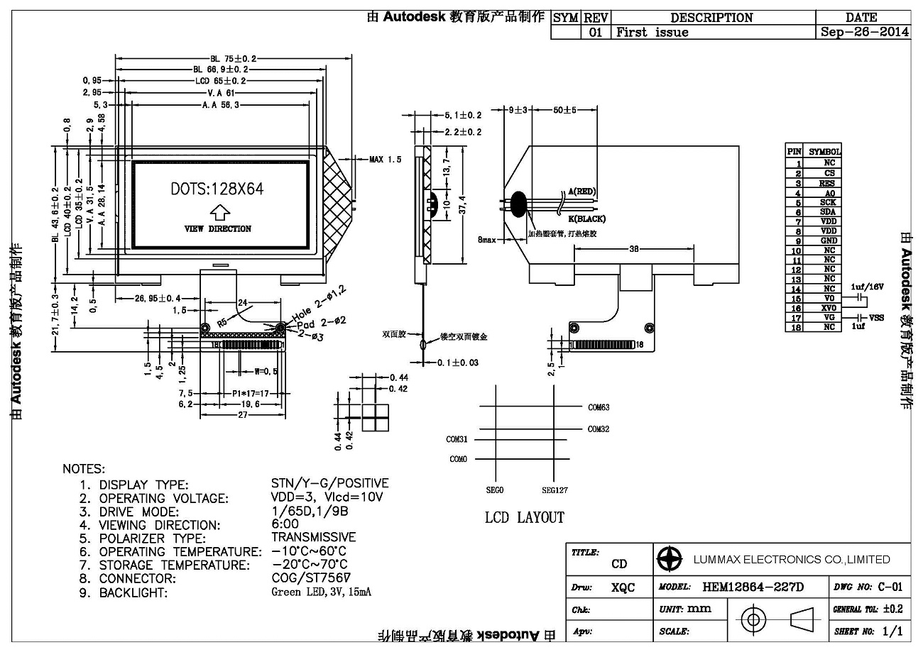 COG Graphic LCD Module HEM12864-227D