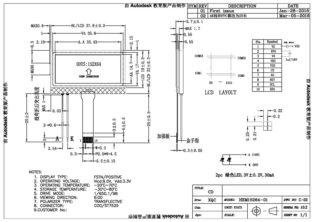 COG Graphic LCD Module HEM15264-01